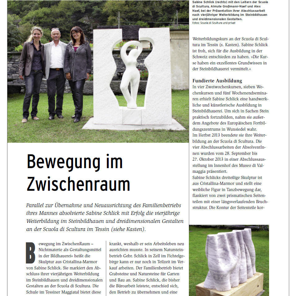 In der aktuellen April-Ausgabe des Magazins "Naturstein" (Ebner-Verlag) ist ein umfangreicher Artikel über die Bildhauerschule erschienen.